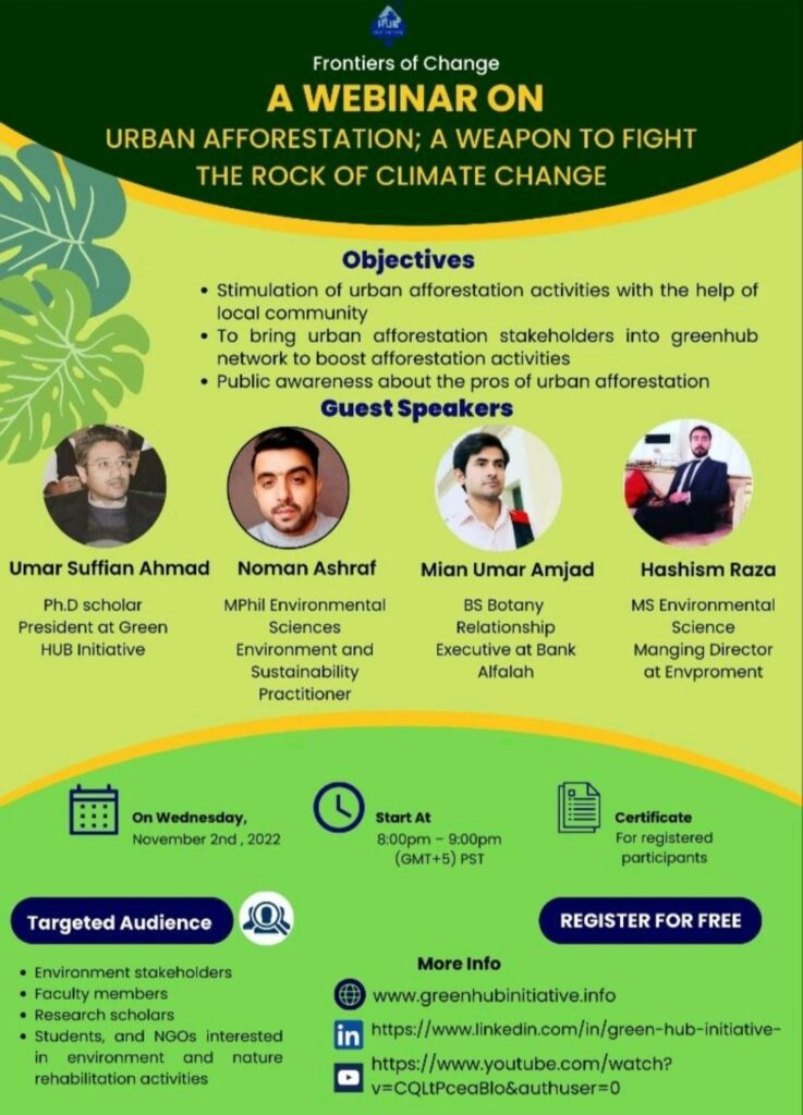 Expert talk about urban forestation with the help of community gathering. How to boost network to enhance the urban forestation activities with limited resources. Making public well informed about the advantages of urban forestation.