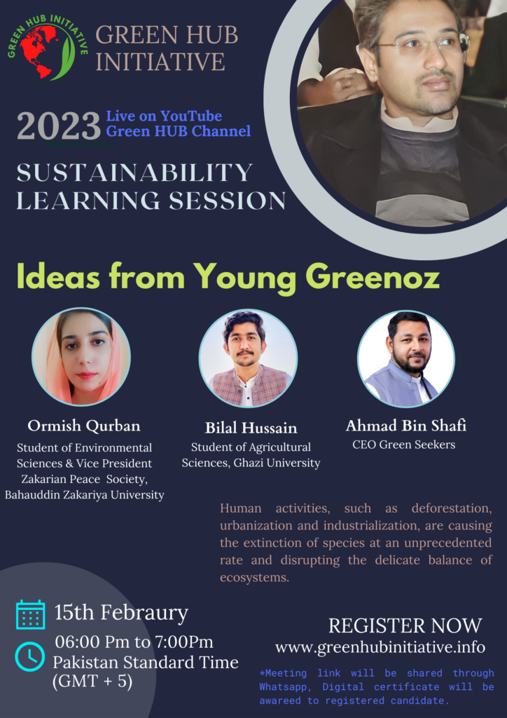 Explore how Green HUB Initiative champions play their role in the society. Students and experts invited to talk on sustainable development. These panelist shared their research, articles, and ideas that inspire environmental responsibility and green innovation.